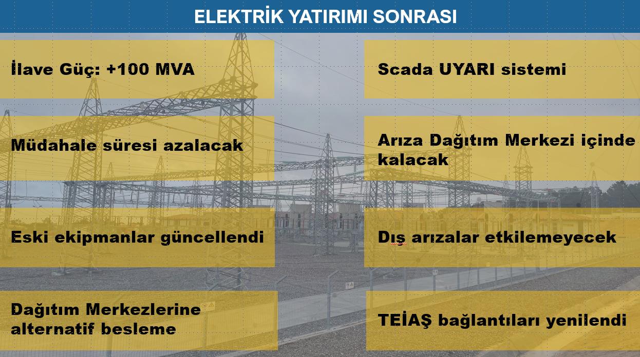 Yeni iletim merkezinde 170 kV giriş gerilim seviyesi ile enerji alınarak, 34,5 kV çıkış gerilim seviyesinde dağıtım yapılacaktır. Bu sayede TOSB bölgesindeki sanayi tesislerinin artan enerji talepleri güvenli, kesintisiz ve verimli bir şekilde karşılanabilecektir.