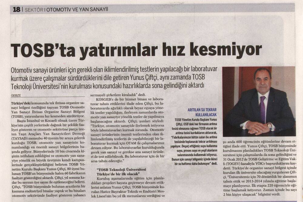 DÜNYA GAZETESİ – OTOMOTİV VE YAN SANAYİİ EKİ – 31 Mayıs 2012
