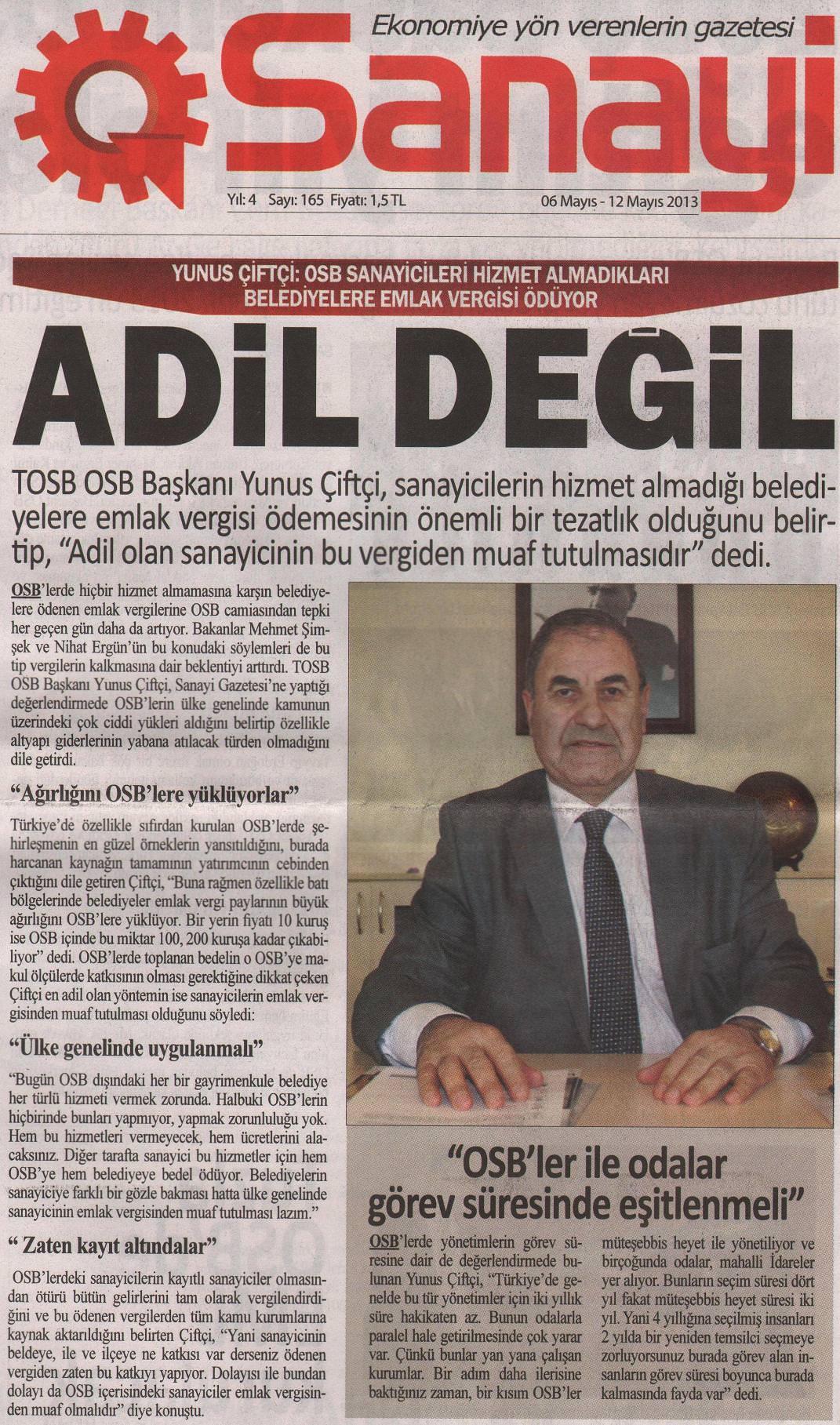 Sanayi Gazetesi – 06-12 Mayıs 2013