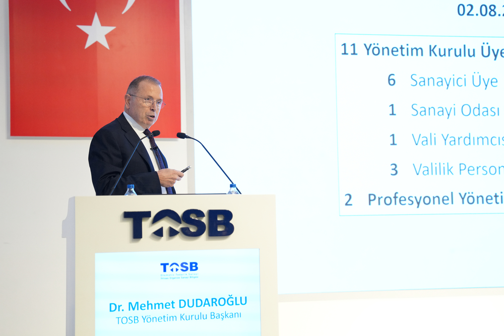 Türkiye'de otomotiv tedarik sanayi temsilcilerinin faaliyet gösterdiği tek global ihtisas organize sanayi bölgesi olan Otomotiv Tedarik Sanayi İhtisas Organize Sanayi Bölgesi (TOSB), 8. Olağan Genel Kurul Toplantısı’nı gerçekleştirdi. TOSB’un faaliyetleri ve yatırımlarının masaya yatırıldığı Olağan Mali Genel Kurul Toplantısının açılışında konuşan Dr. Mehmet Dudaroğlu, “TOSB olarak siz üyelerimize daha iyi hizmet vermek için çalışmalarımızı kararlılıkla sürdürüyoruz; Geçtiğimiz 4 yıl içerisinde toplam değeri 63 milyon Euro yu bulan yatırımlarımızı başarıyla tamamladık. Bu yatırımların tutarının 28,5 milyon Euro’luk kısmı ödenmiş olup, kalan kısmı Ağustos 2030 yılına kadar ödenecektir. ” dedi.