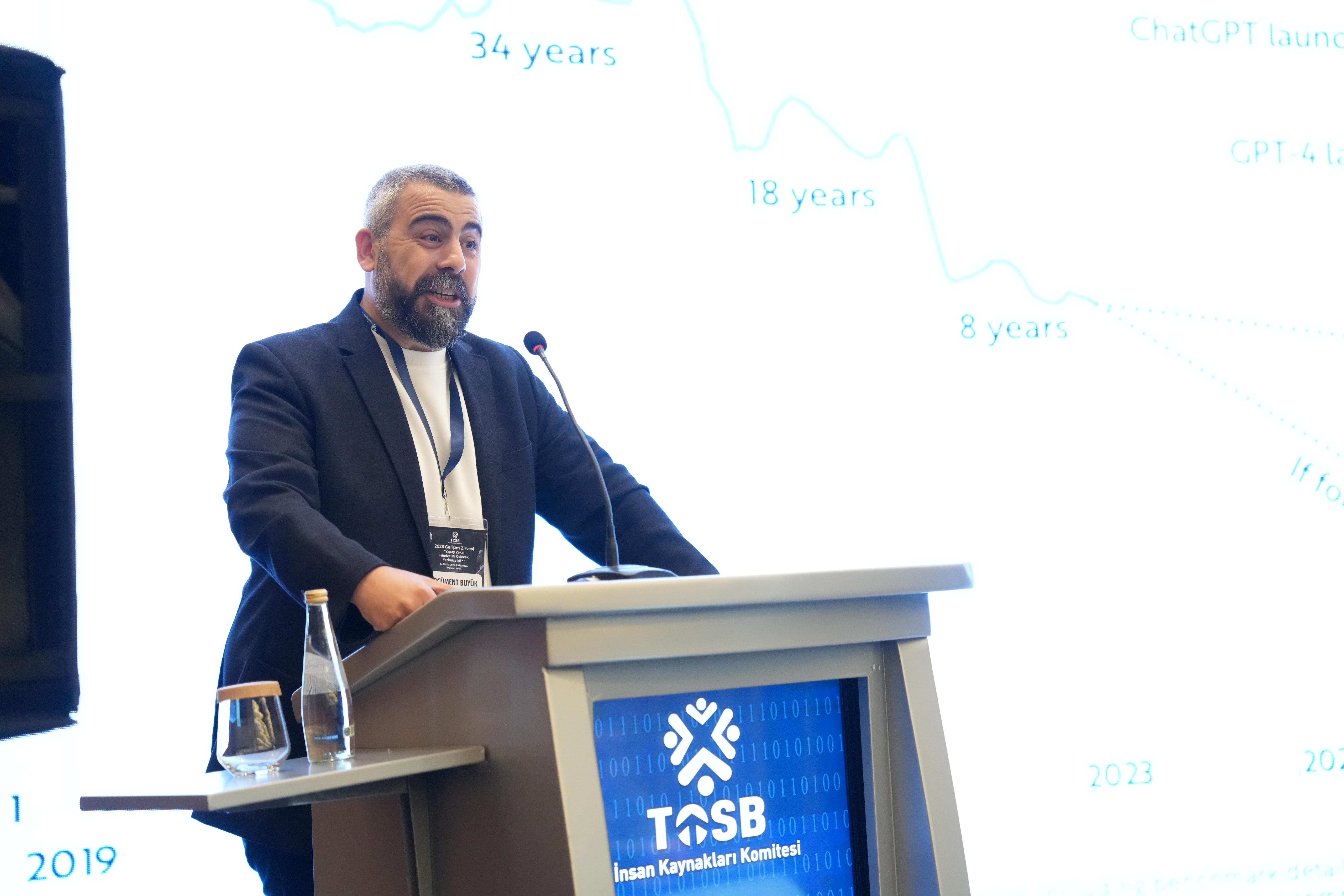 Zirvenin açılışında konuşan TOSB Yönetim Kurulu Başkanı Dr. Mehmet Dudaroğlu, gelişimin insan merkezli bir dönüşümle mümkün olacağını vurguladı: “Yapay zekâ gibi güçlü bir teknolojiyi iş süreçlerimize entegre ederken, insanın değerini ve yaratıcılığını göz ardı etmeden ilerlemek zorundayız. TOSB olarak bu değişime yön vermeye, öncülük etmeye kararlıyız.”
