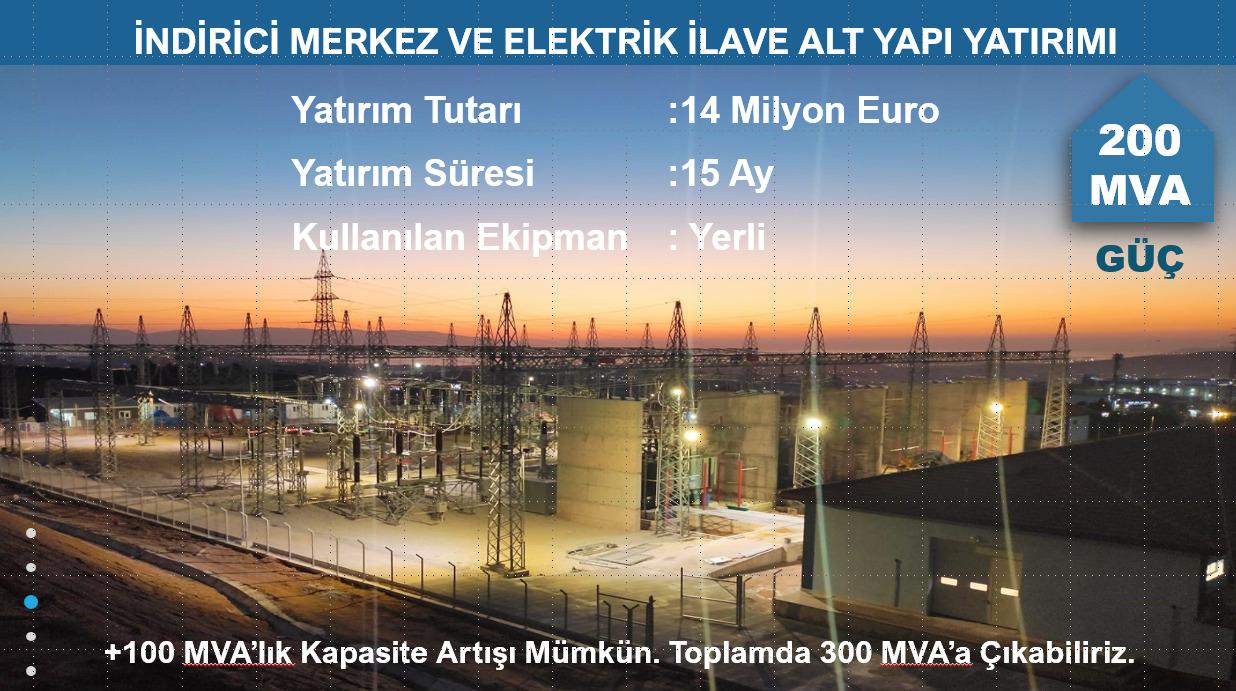 Orman Alanından izin alınarak üretilen, 21.500 M² büyüklüğündeki arsa üzerinde inşa edilen tesis, 2022 yılında başlayan çalışmaların ardından 456 günde tamamlandı. Toplam 4 x 100 MVA kurulu güce sahip olan iletim merkezi, TOSB ’un enerji ihtiyacını karşılamak üzere modern teknolojiyle donatılmıştır.
